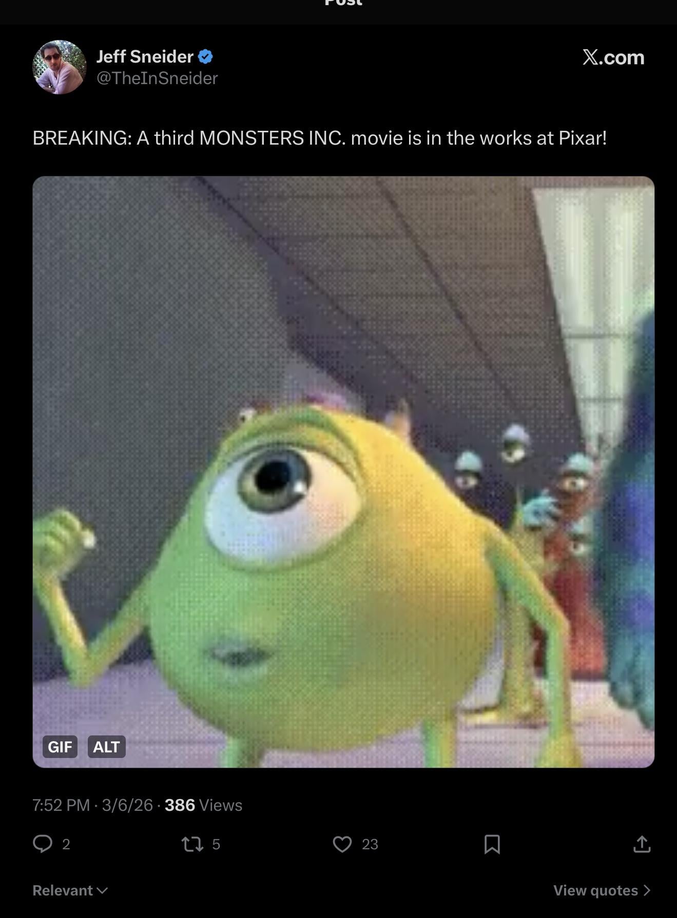 Youngstar9999 on March 7, 2026 1:01 am wouldn’t it be Monsters Inc 2 since the prequel was called University?