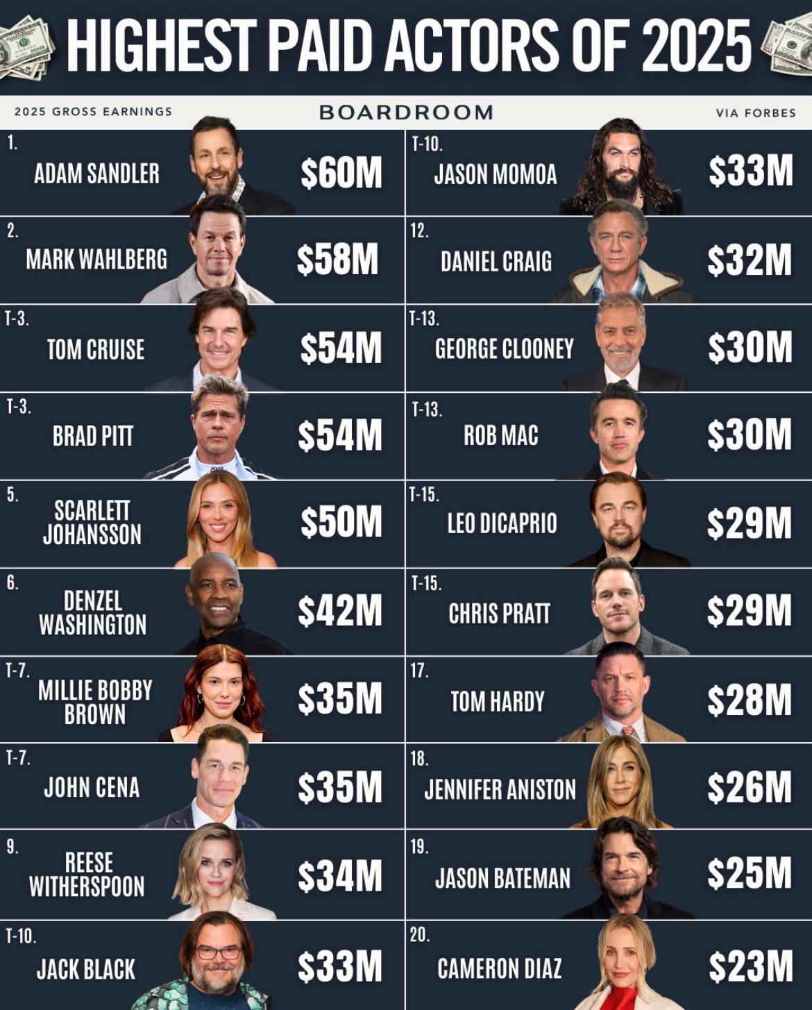 I’m sorry wtf is Mark Wahlberg doing to be higher paid than Cruise or Pitt?
