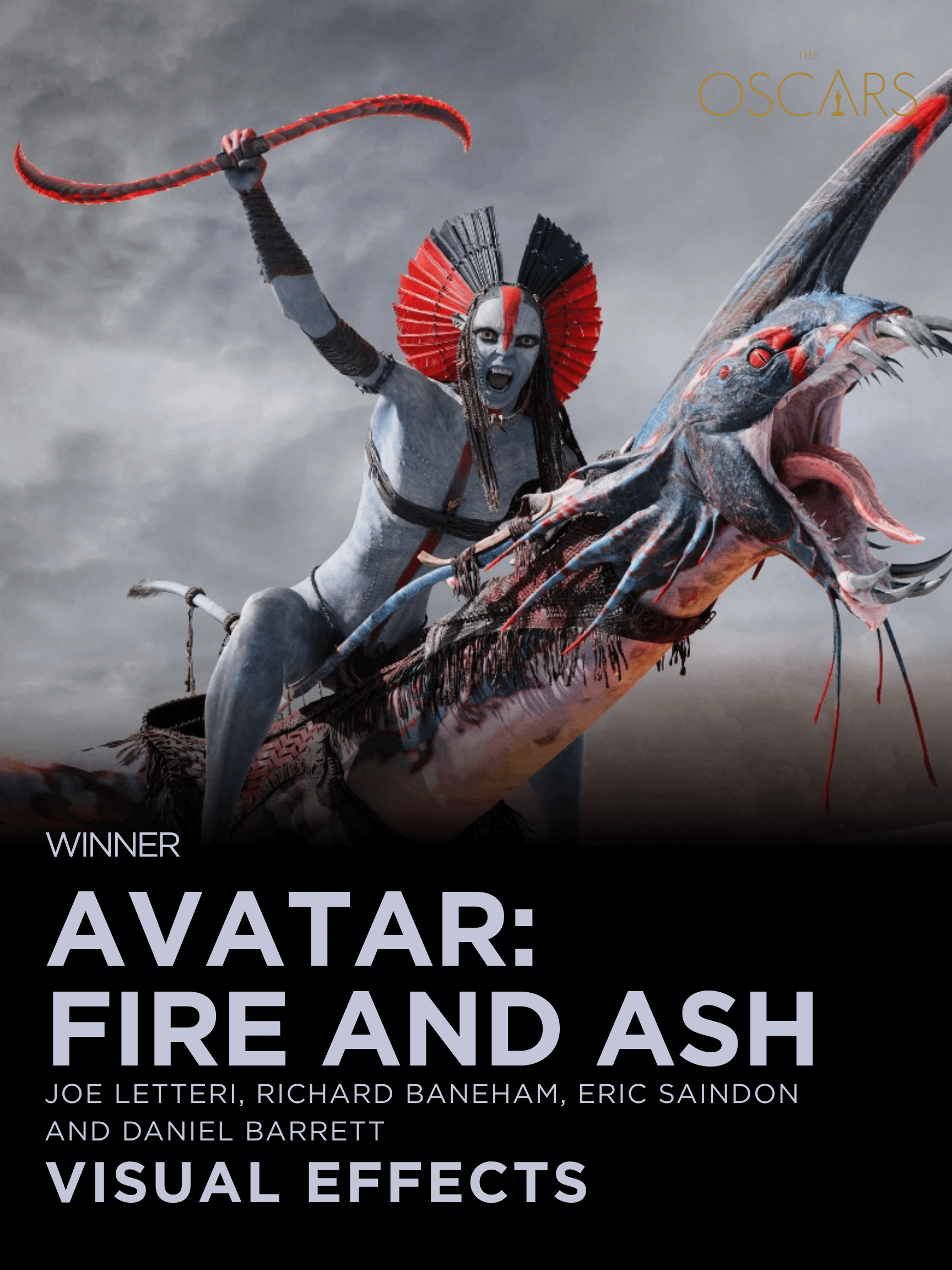 Share Facebook Twitter LinkedIn Pinterest Bluesky Threads Winners: Joe Letteri, Richard Baneham, Eric Saindon and Daniel Barrett by MoviesMod