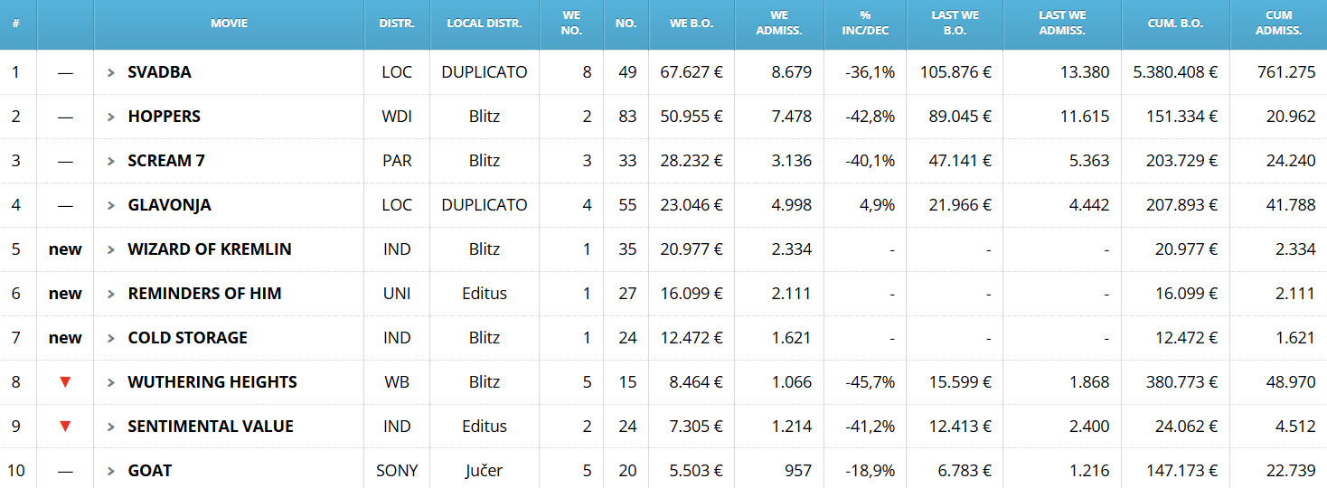 Croatia Weekend Box Office (12th March – 15th March)