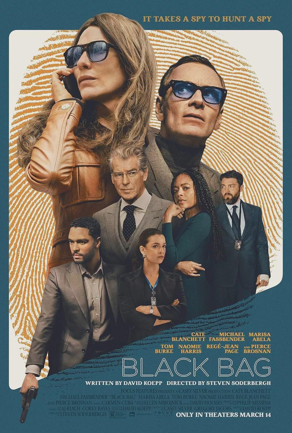 BLACK BAG opened last year. The spy thriller film was directed by Steven Soderbergh and written by David Koepp. It received critical acclaim — 96% RT with an average rating of 8.1 and 85 Metacritic. It grossed $43.4 million worldwide on a $50–60 million budget.