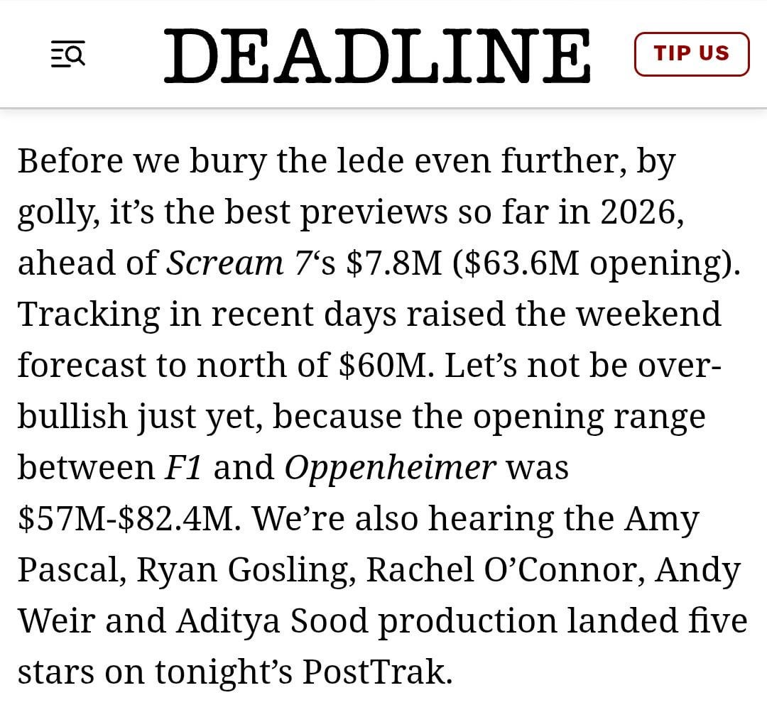 Per Deadline, ‘Project Hail Mary’ earned 5 stars on PostTrak from Thursday night audiences. by chanma50