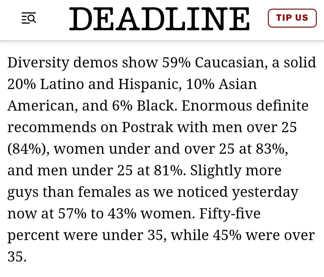 People are misreading the response to audiences that showed up and the type of audiences that showed up. I still think there’s reasons to think this will open big but won’t have as big as legs as it looks