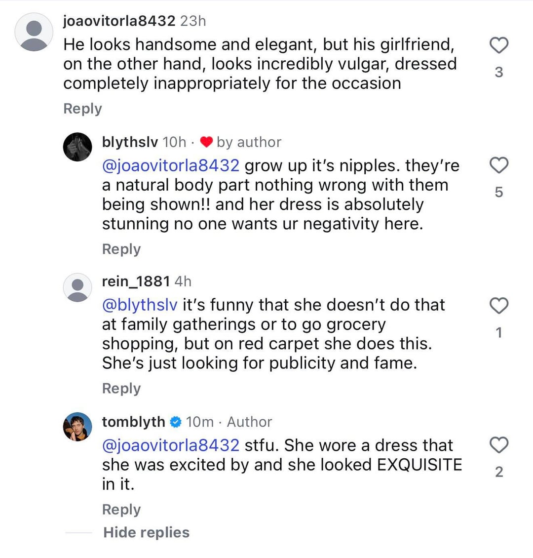 Love when Tom Blyth tells off an annoying asshole in his IG comments
