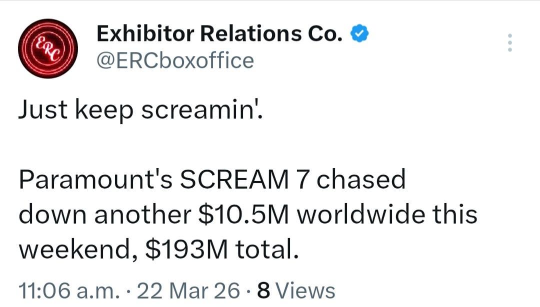 New record for Scream internationally! More than Scream 3’s $72.7MM