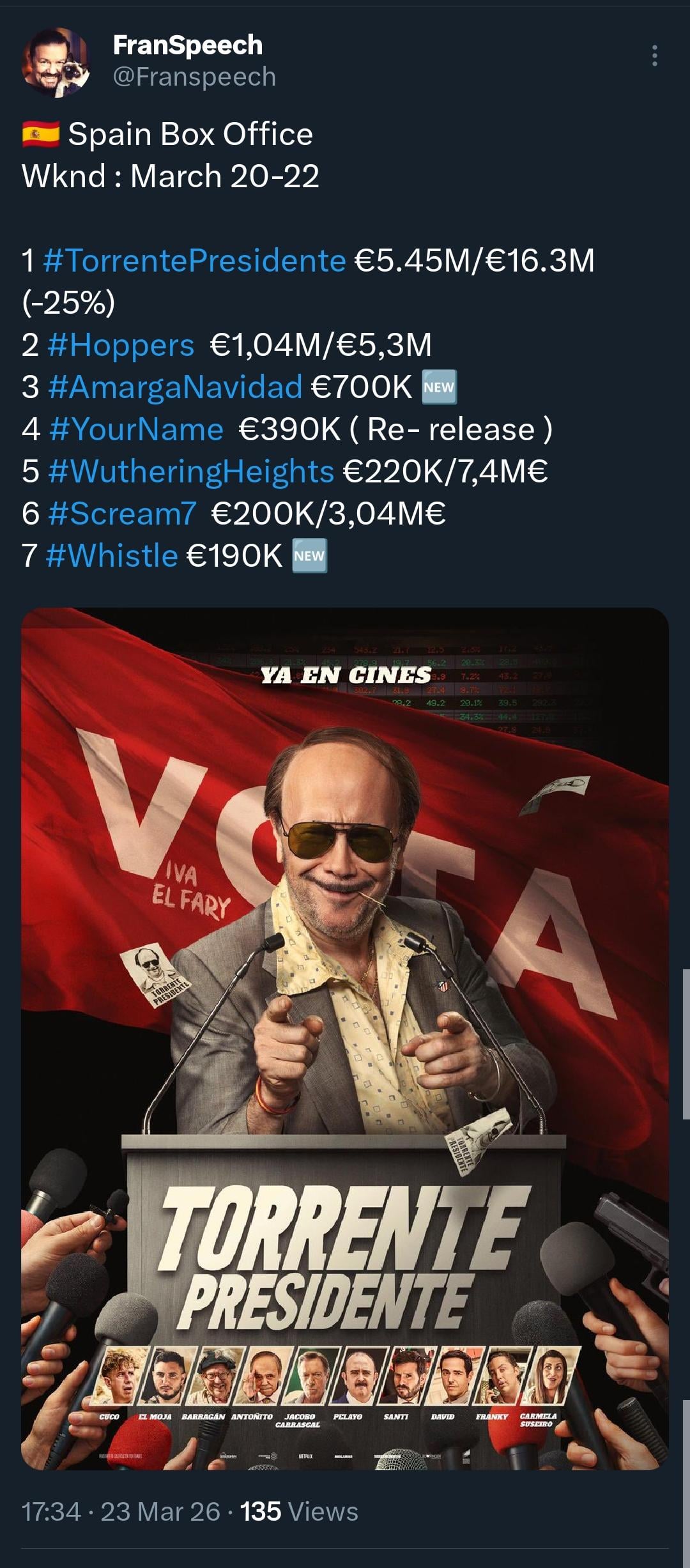 Project Hail Mary topped the Australian box office in its opening weekend with $6.15M, marking the highest opening weekend of 2026 so far. 🦘Dhurandhar: The Revenge also opened over the weekend, taking the No. 2 spot with $3.51M. 🐨GOAT is now in the No. 3 spot, adding $1.41M in its second weekend.March 23, 2026