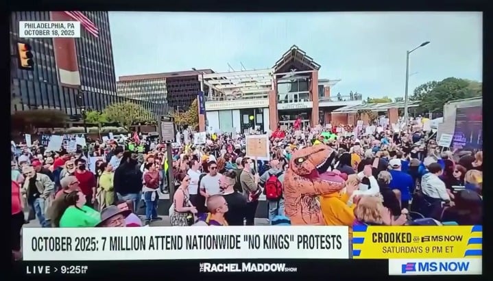Maddow skewers Trump: 7 million people turned out for No Kings Day in October, and that was before Trump bulldozed the East Wing of the WH… It was before he started an apocalyptic war with Iran… It’s before they killed Renee Nicole Good. It’s before they killed Alex Pretti