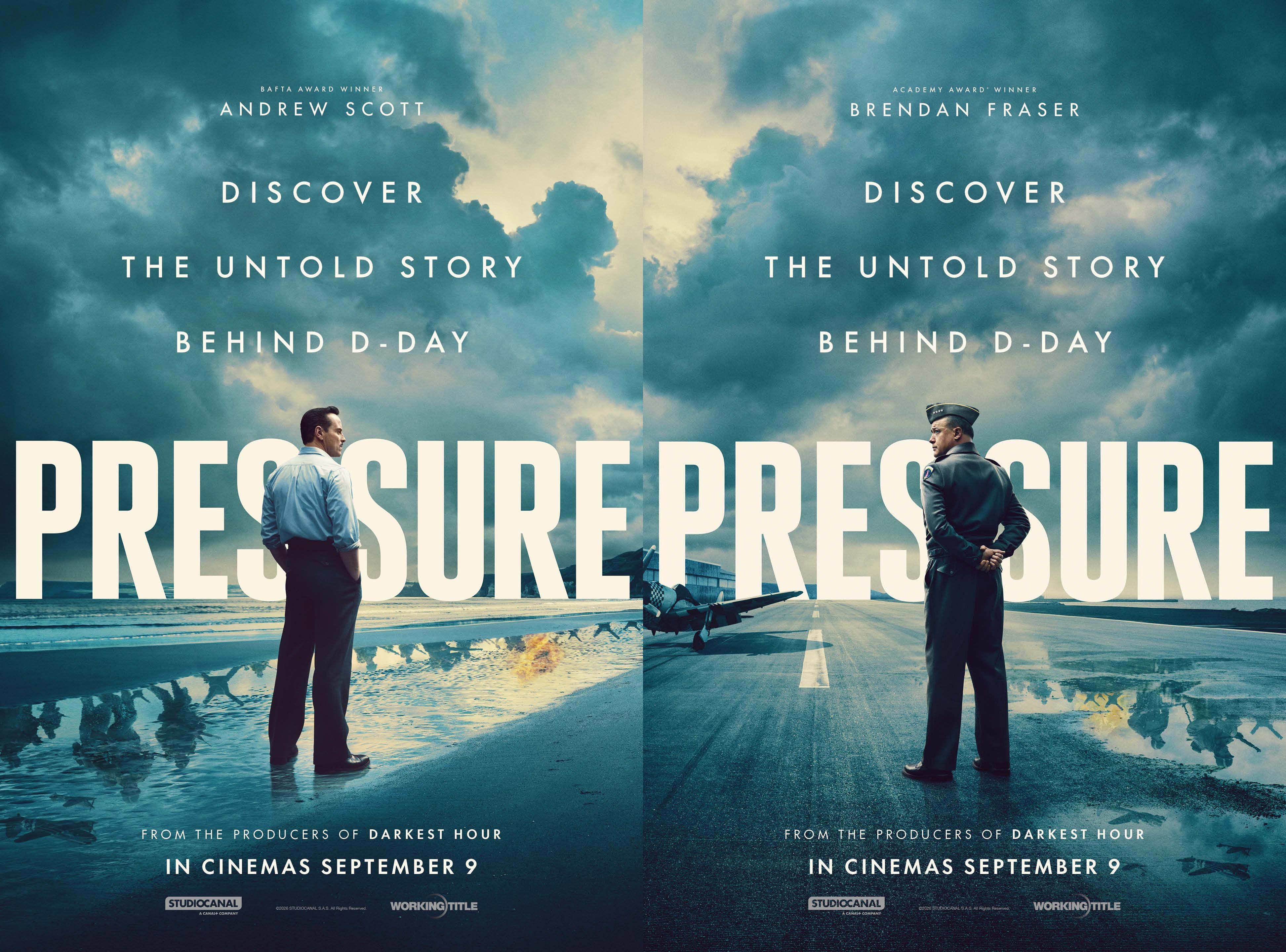 Official Posters for Anthony Maras’s “Pressure” – In the tense 72 hours before D-Day, General Dwight D. Eisenhower (Brendan Fraser) and Captain James Stagg (Andrew Scott) face an impossible choice–launch the most dangerous seaborne invasion in history or risk losing the war altogether.