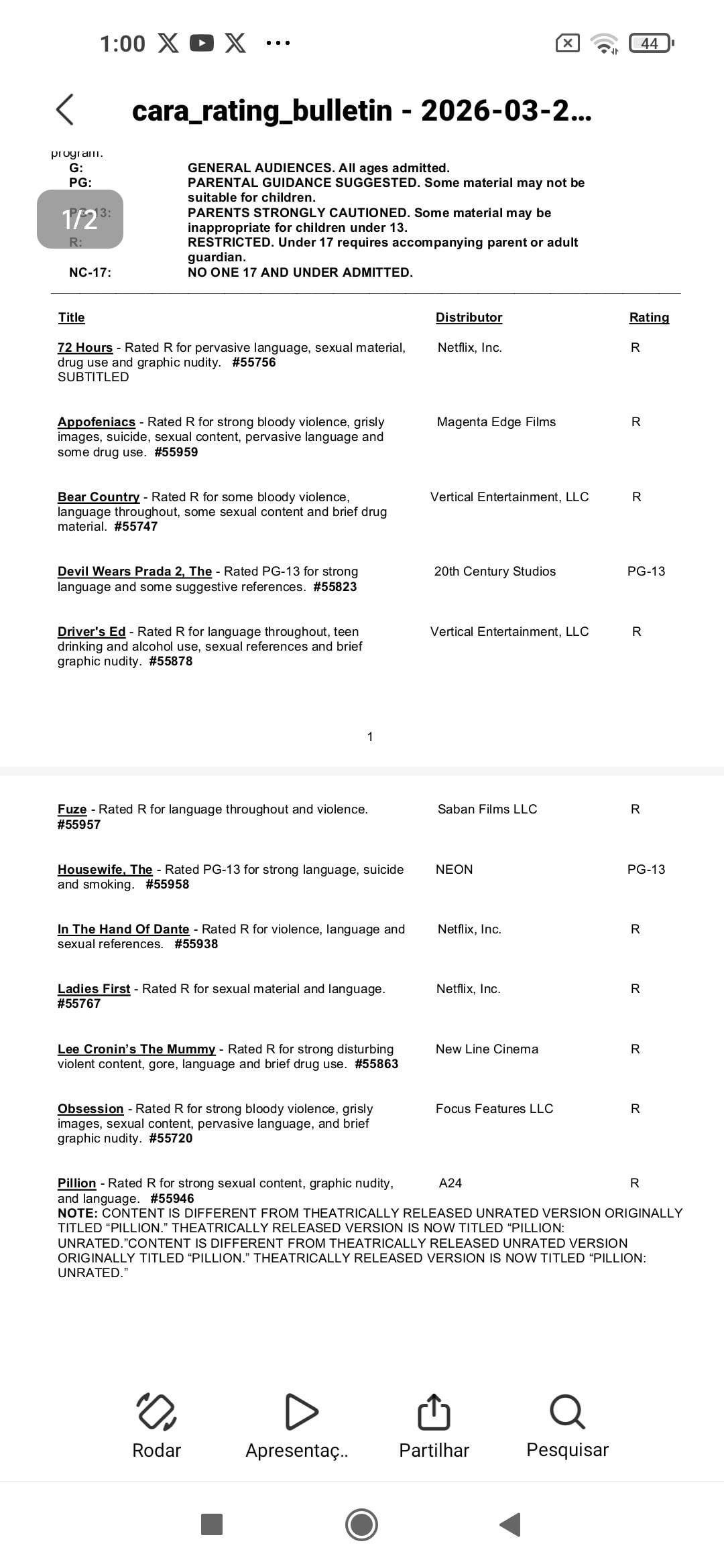 MPA Ratings Update: 72 Hours Rated R, The Devil Wears Prada 2 Rated PG-13, Driver’s Ed Rated R, Fuze Rated R, In The Hand of Dante Rated R, Lee Cronin’s The Mummy Rated R, Obsession Rated R, Pillion Rated R