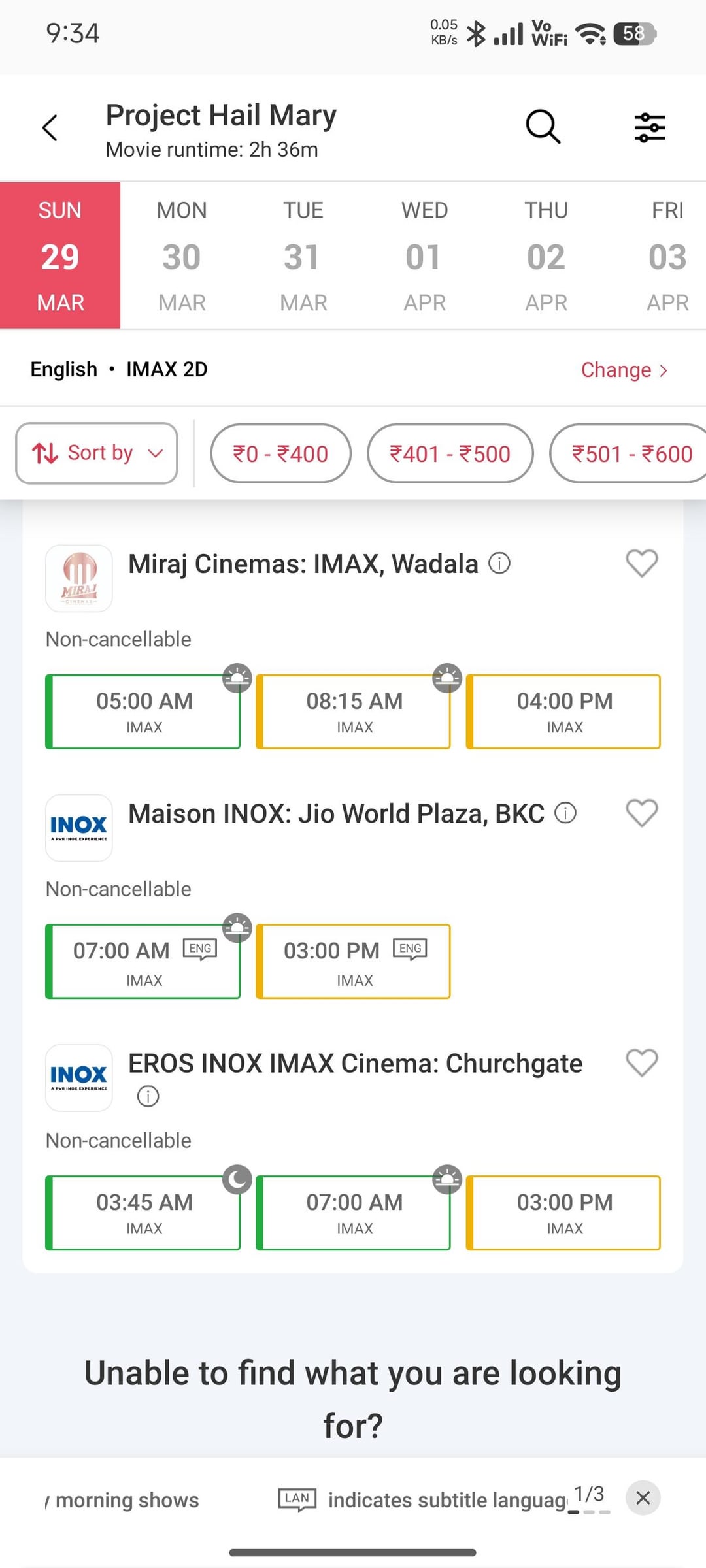 rutujz on March 28, 2026 5:13 am I see all IMAX shows being sold out but the normal one’s are struggling . I saw PHM at miraj, the 8:15 show and more than half the theater was filled.