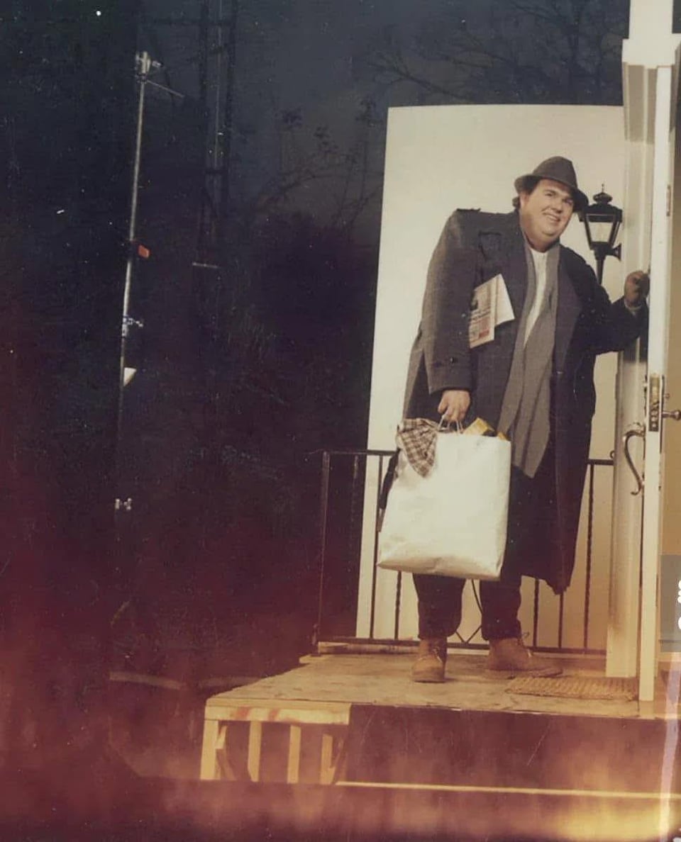 John Candy rehearsing for the Uncle Buck promo poster, 1989