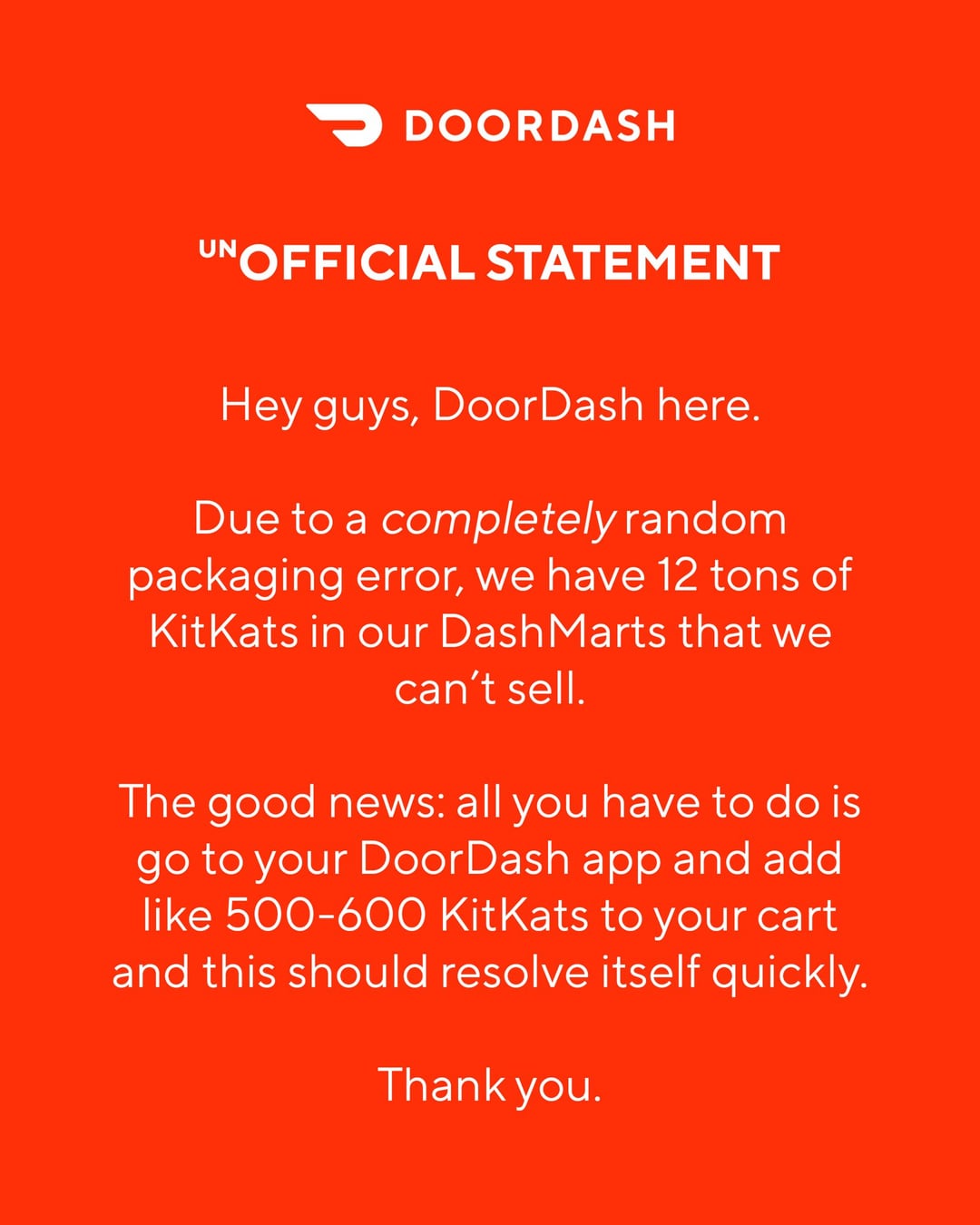 I love when they do shit like this. It makes me happy knowing that the people running the social media accounts for these companies are having fun with their jobs.