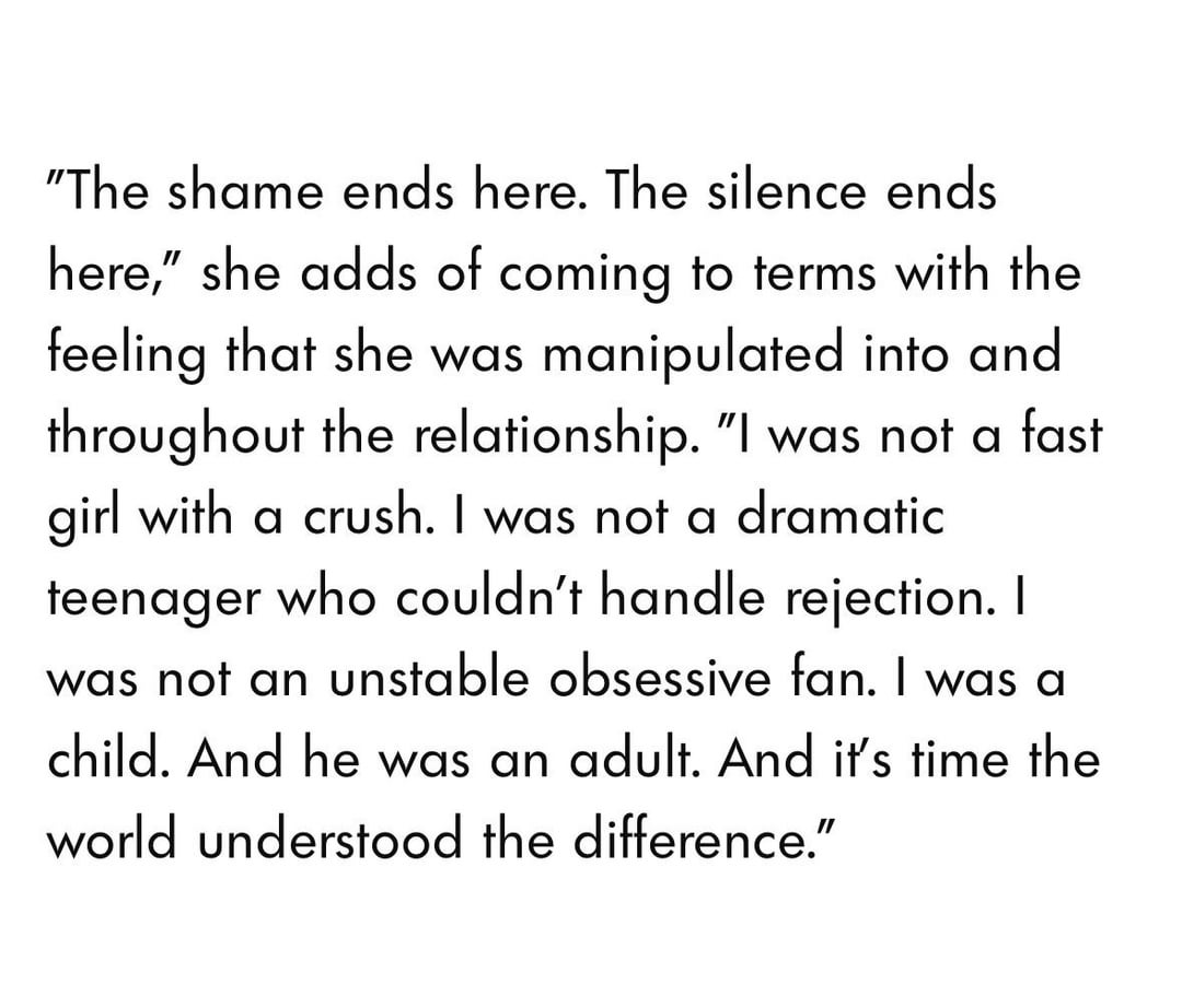 I’m glad she’s able to tell her truth, it’s brave of her to speak about this when she could’ve just closed this chapter and stayed silent. But my real question is, why did her parents do to try and protect her?