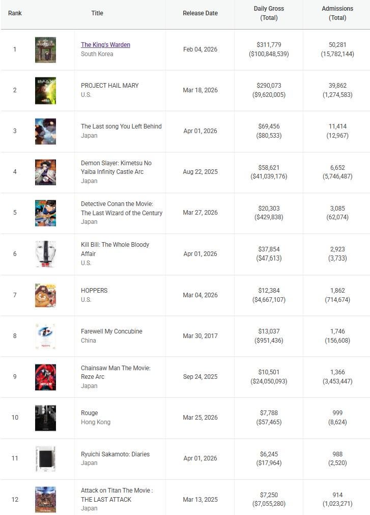 The Man Who Lives With the King: The movie has hit 15.7 million admits as the movie will cross 15.8 million admits tomorrow and 16 million admits on Saturday.