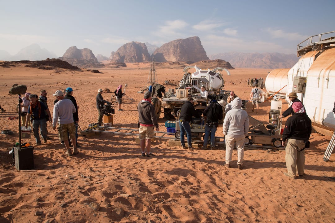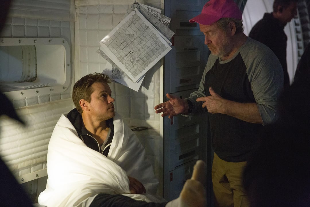 Matt Damon and director Ridley Scott on the set of The Martian (2015)