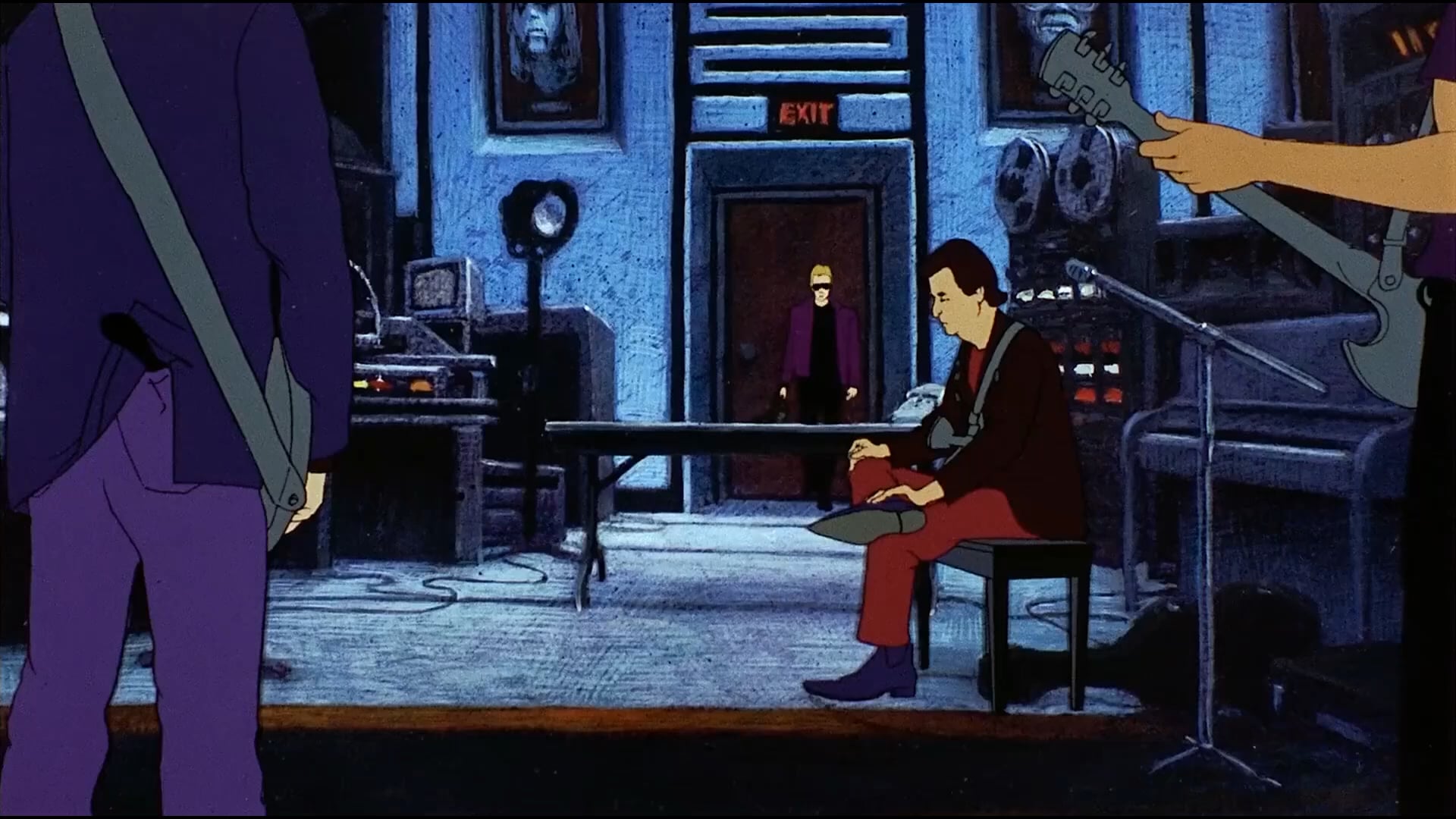 Like – part of this scene is clearly just the negative that they made the rotoscope with, with some color changes and flashing lights over it.