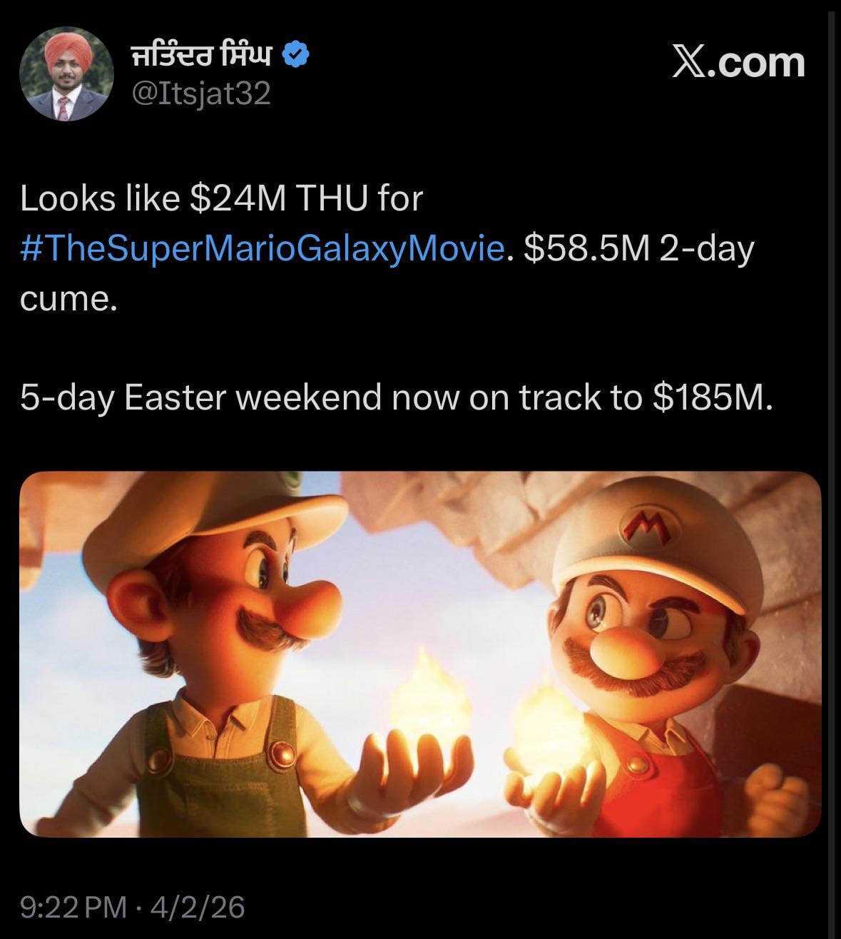 Super Mario Bros. had a massive FRI jump, so we’ll have an even better idea on how high it can go as soon as we see its FRI gross.