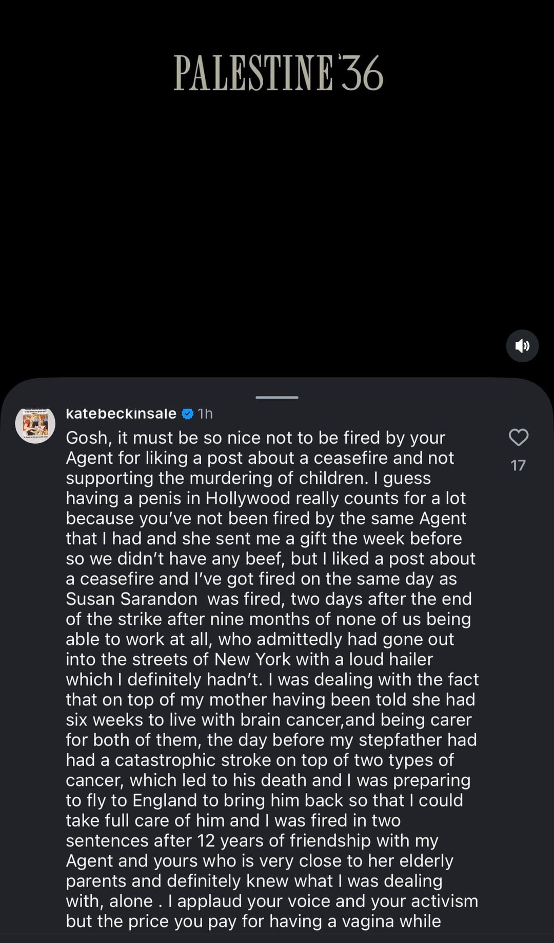 Lately Kate Beckinsale has been posting a lot of these stream of consciousness posts. The one about Michael Sheen and now this, her points would be better made with a more concise statement.