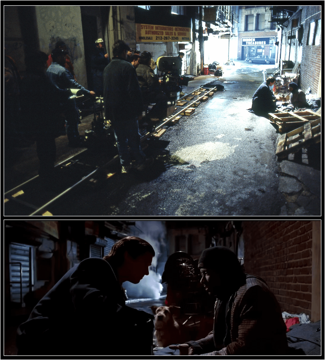 Christian Bale and Reg E. Cathey filming American Psycho in an alley off Nassau Street, NYC, 2000 by NomadSound