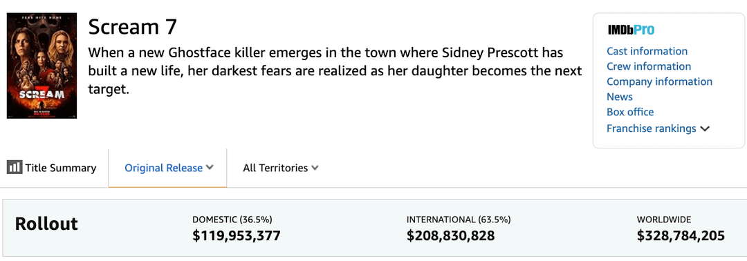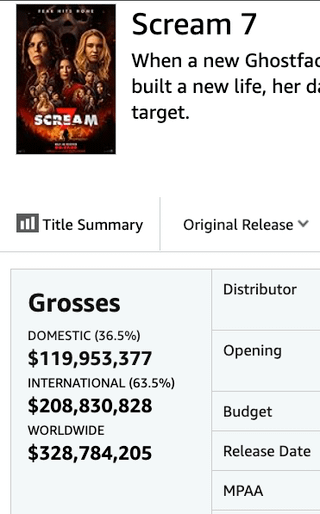 Scream 7's international gross. Is that actually accurate? I figured it was some error, but it's been up for over 12 hours. Their not fixing is gaslighting me into thinking it might be accurate. Is that even possible? by Fumikechu237