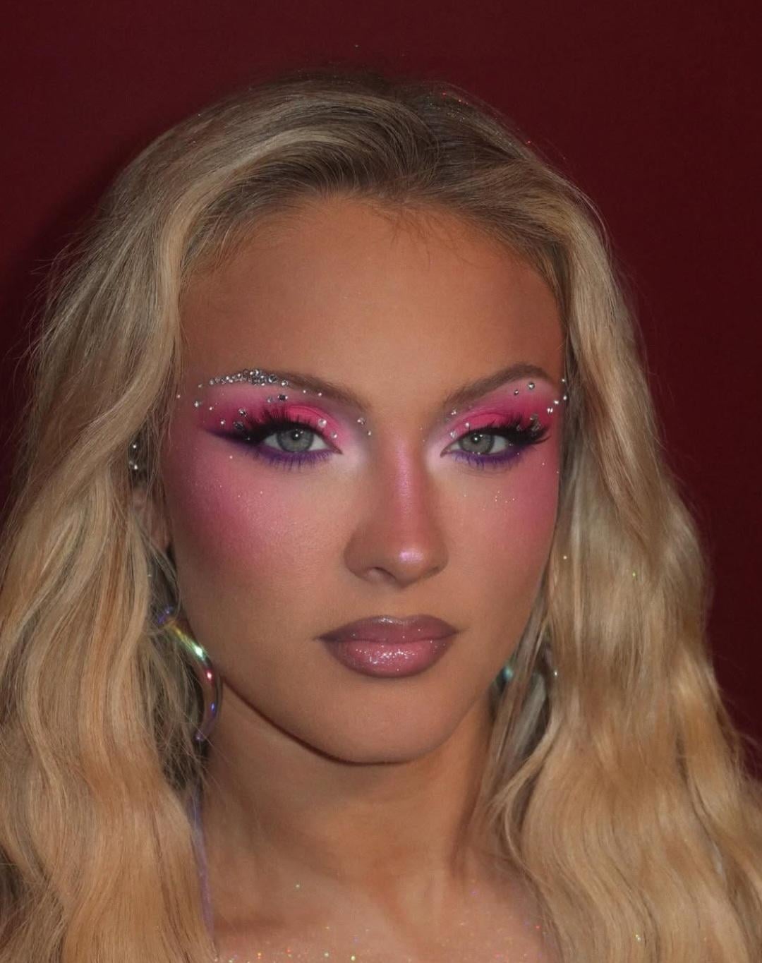 I actually like the last one the best… I feel like the pink and purple looks nice with her eye color. Plus the bedazzled brow is spectacular.