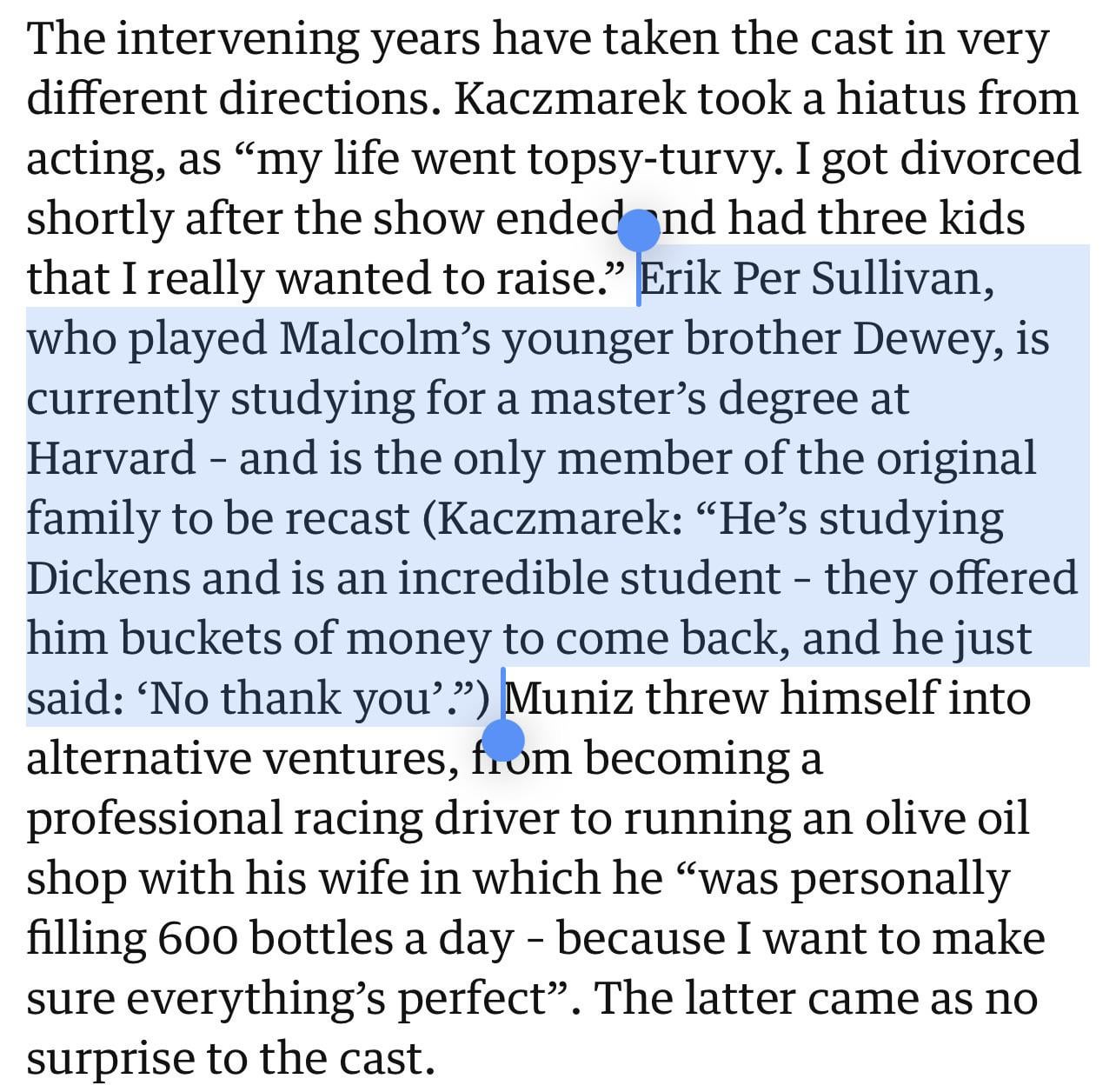 Erik Per Sullivan did not return for the Malcolm in the Middle revival as he is studying for a master’s degree at Harvard. The show offered him buckets of money to come back, and he just said: ‘No thank you’.