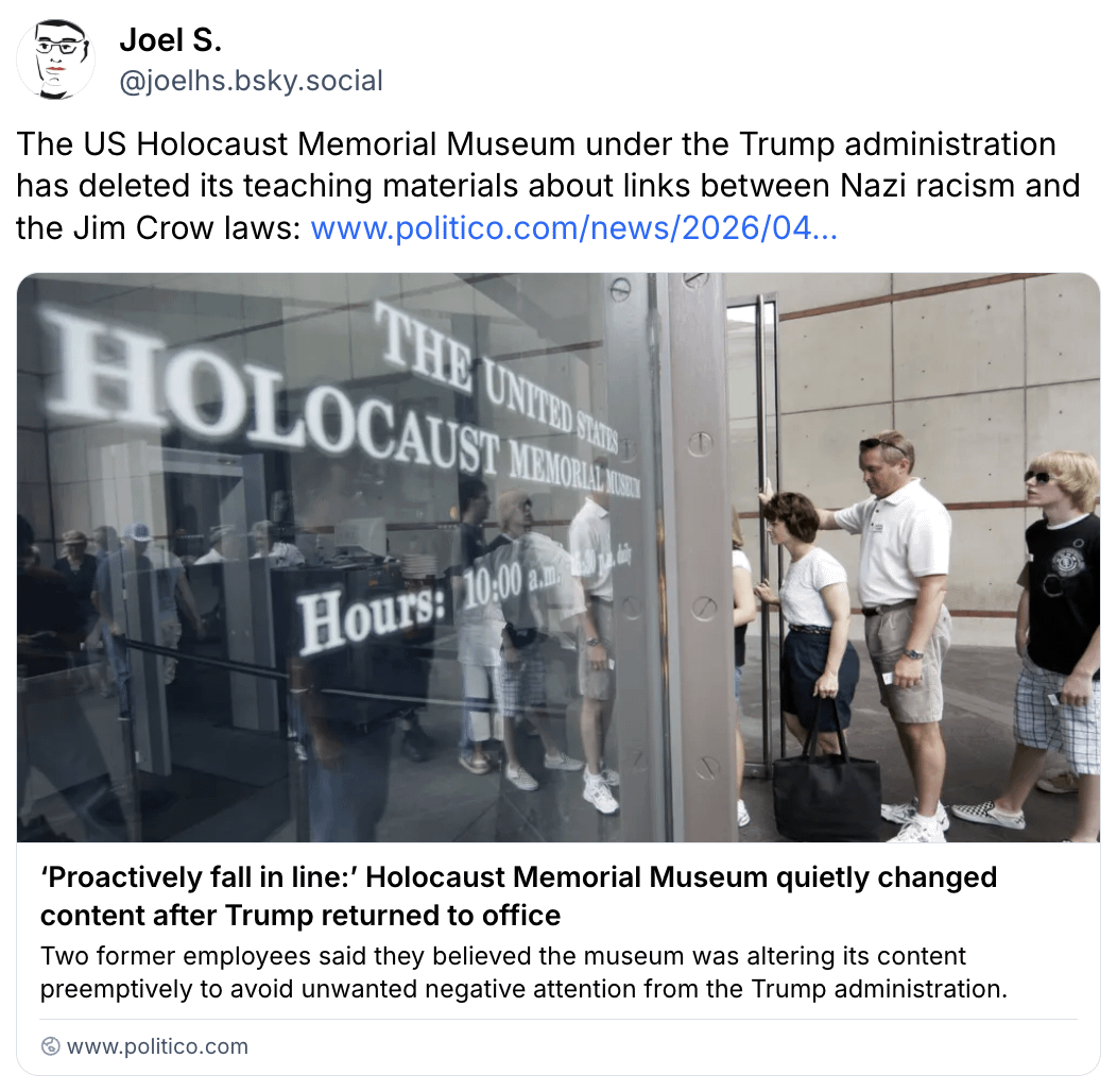 The US Holocaust Memorial Museum under the Trump administration has deleted its teaching materials about links between Nazi racism and the Jim Crow laws