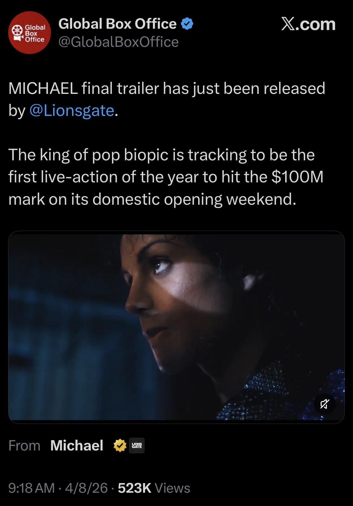 mshelbz on April 10, 2026 1:17 pm People who knew nothing about American pop culture in the 80’s and 90’s knew Michael Jackson. I don’t know if it’ll be the biggest domestic hit of the year but it’ll definitely have a large WW audience.