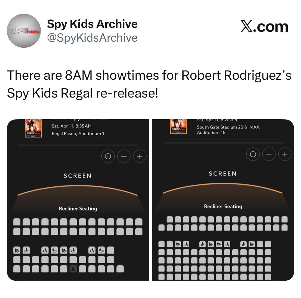 Spy Kids Re-Release 8AM Showtimes