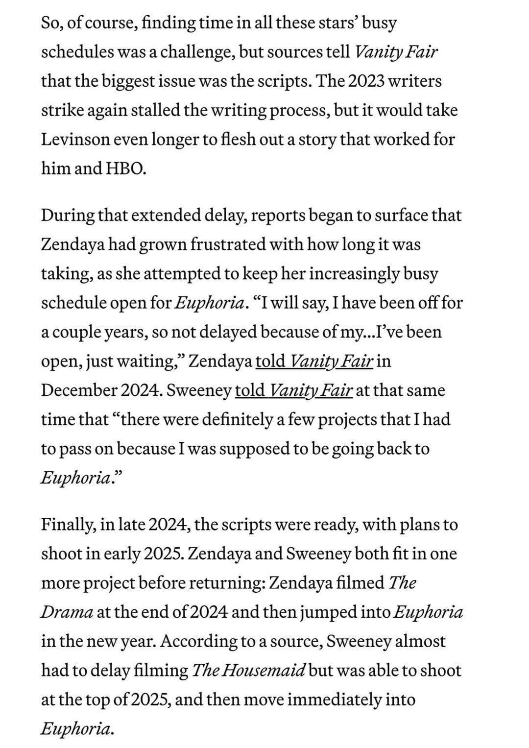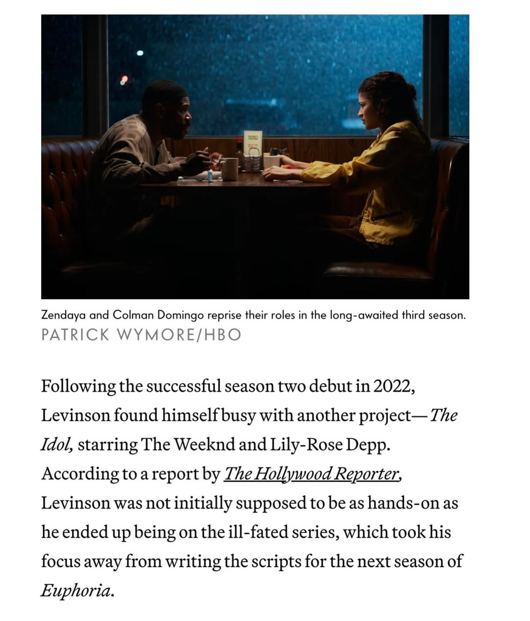 Unlike the first two seasons of Euphoria, Zendaya is not an EP on season 3. Vanity Fair cites scheduling conflicts and tension with creator Sam Levinson as the reason.