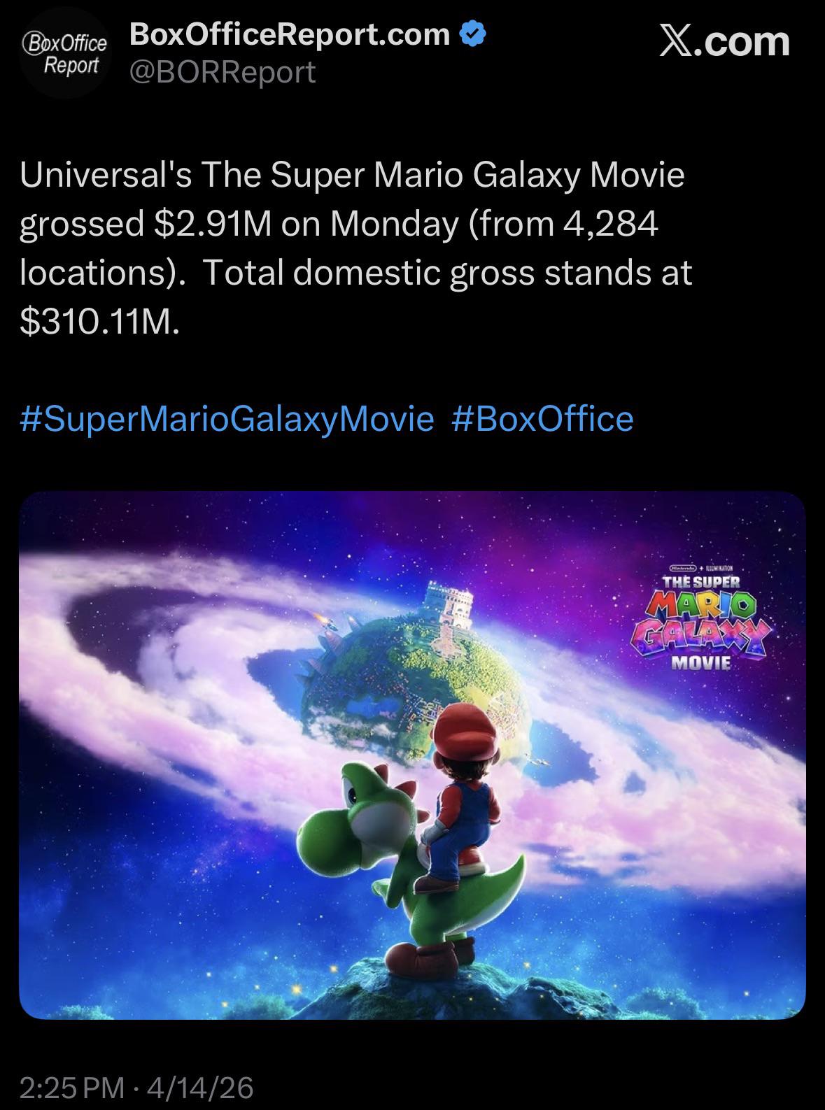 I‘m starting to think that even a 425M+ final is going to be difficult for Super Mario Galaxy, which is just insane to even say.
