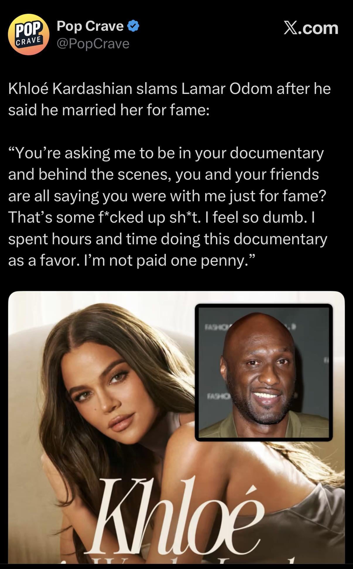 Even if someone’s not a fan of the kardashians i have respect for Khloe being by his side and even on one of the talk shows recently he was being interviewed and was talking about he’ll always have love and respect for her and he turns around and says this! I can see why she would be angry!