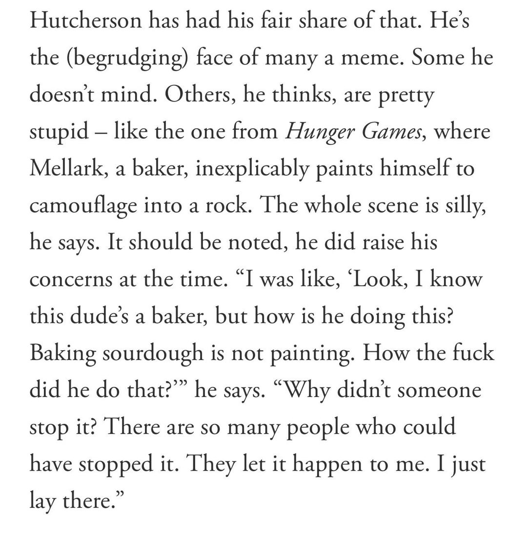 They establish this silliness but what’s weirder is they never use it again, Peeta would 100% make the camouflage team his ally in the next movie but ofc why use the plot you’ve already built.