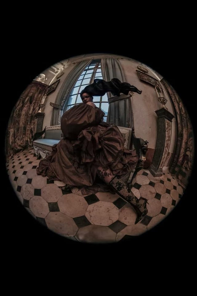 I assume these are photos by Tim Walker, who’s been experimenting with the fisheye lens for a while now (he shot one of Harry Styles’s albums cover). I’ve been a fan of his work since around 2006 but this particular shoot does not showcase his artistry, I think. Some shots are too dark, sometimes Rihanna gets lost in the background, … he can take such beautiful pictures (please do check them out) that this feels like a miss 🙁
