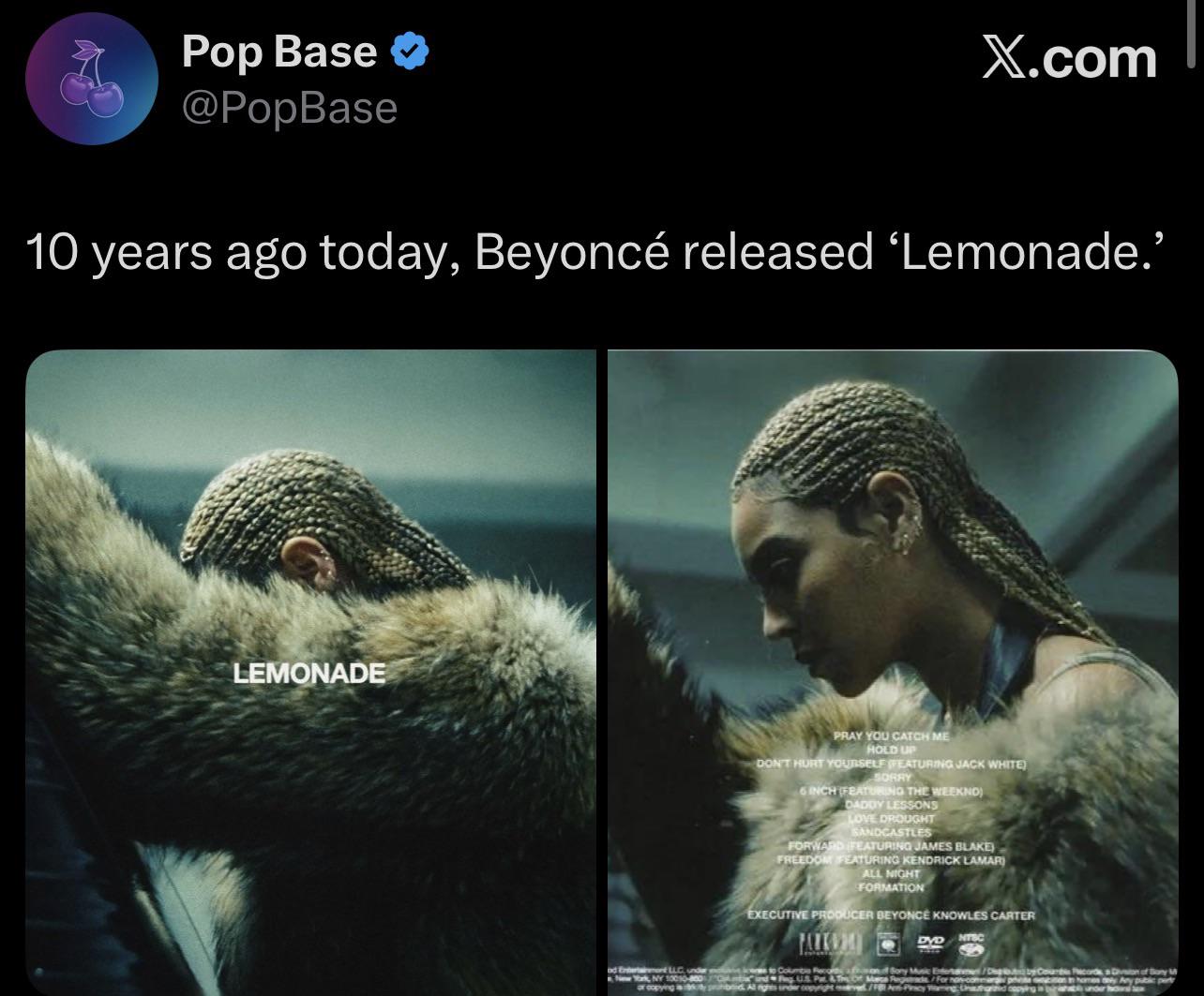 Beyoncé released ‘Lemonade’ 10 years ago today