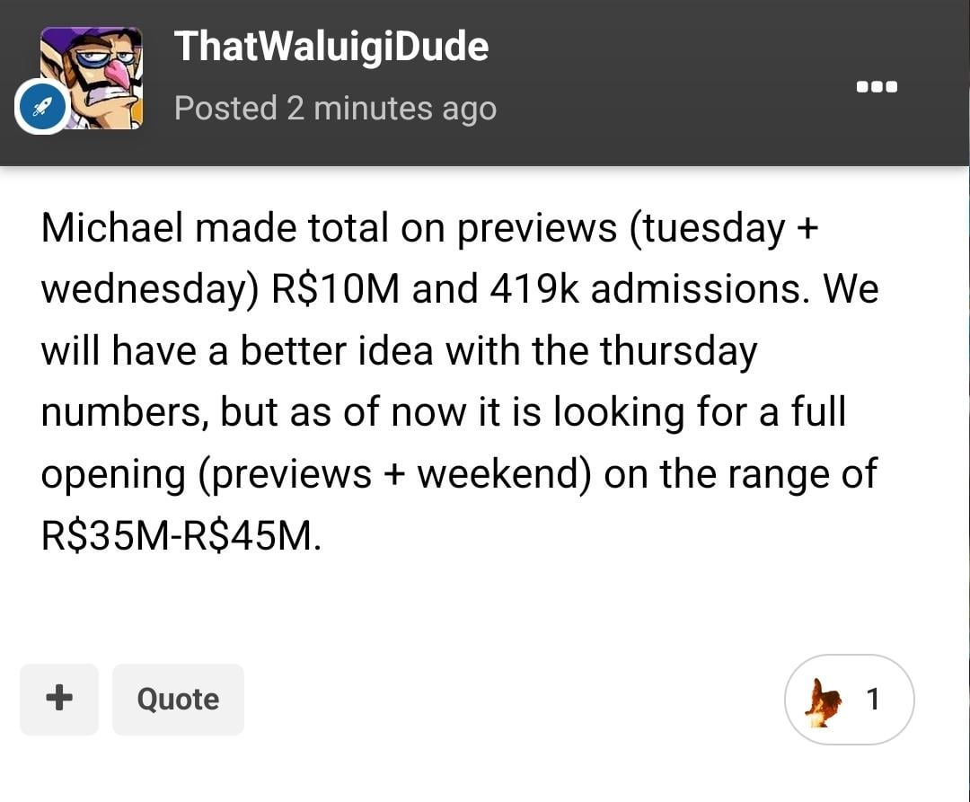 Brazil: Michael makes a total of R$10M on previews, looking for a full opening on a range of R$35M-R$45M by ThatWaluigiDude