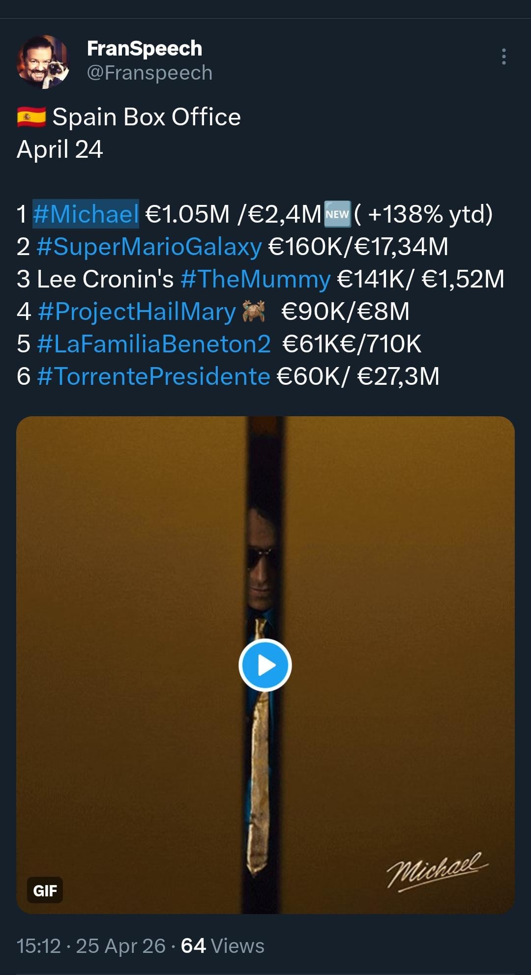 ๐Ÿ‡ช๐Ÿ‡ธ Spain Box Office Friday April 24