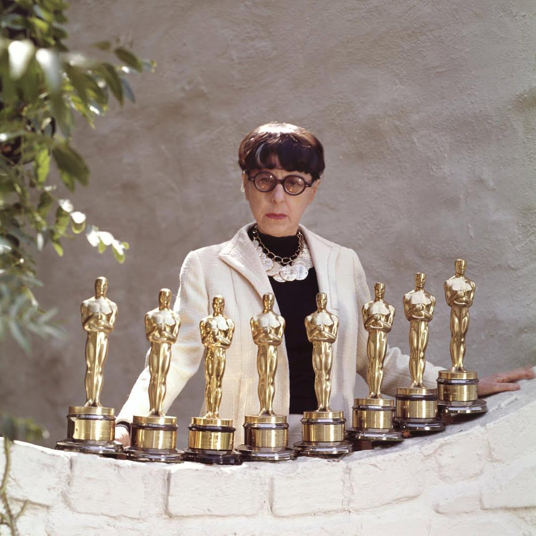 Costume designer Edith Head in 1974 with her “eight little men”. Edith still holds the record for most Oscar nominations (35) and awards won (8) by a woman for her work in 432 films throughout her career.