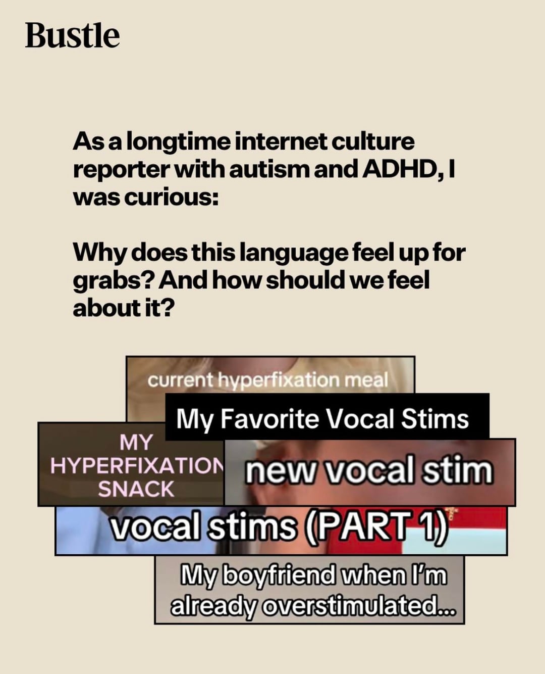 They can come and check back in with their hyper fixation statuses when they’re so overstimulated they can’t get out of bed and function on a day to day basis. Or when they have a fun day of echolalia where the same word or phrase is going over and over and over in your head.