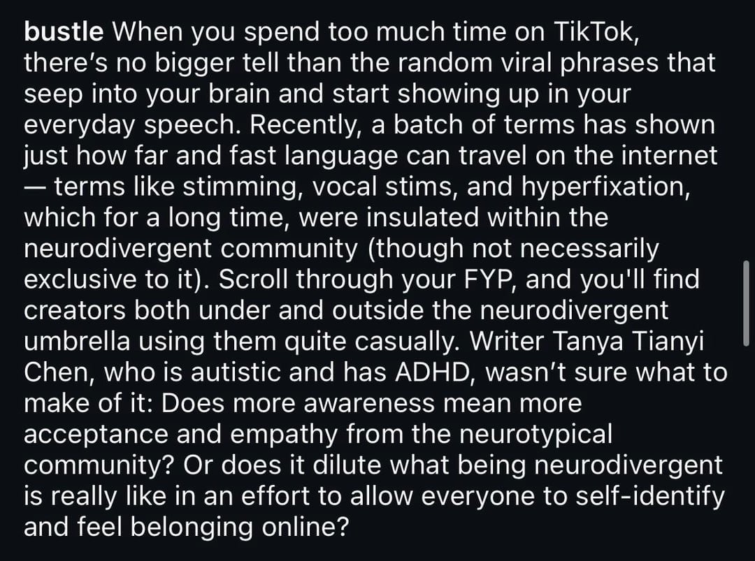 Double edged sword: love that there is more awareness for neurodivergence, not loving that it’s being hijacked because it’s trendy
